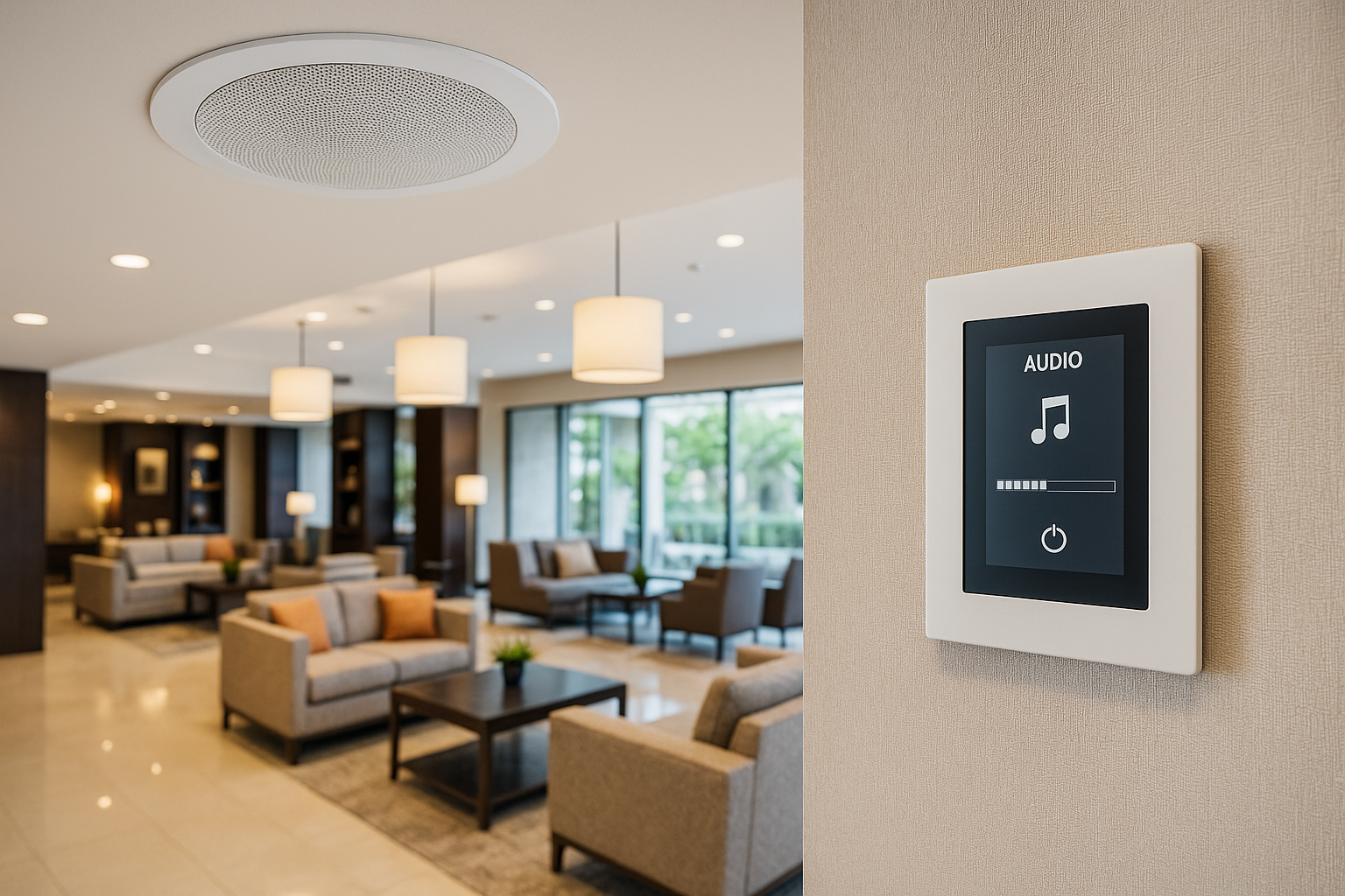 Ejecución de un sistema de audio ambiental tanto en áreas cerradas como abiertas, asi como un circuito de CATV
